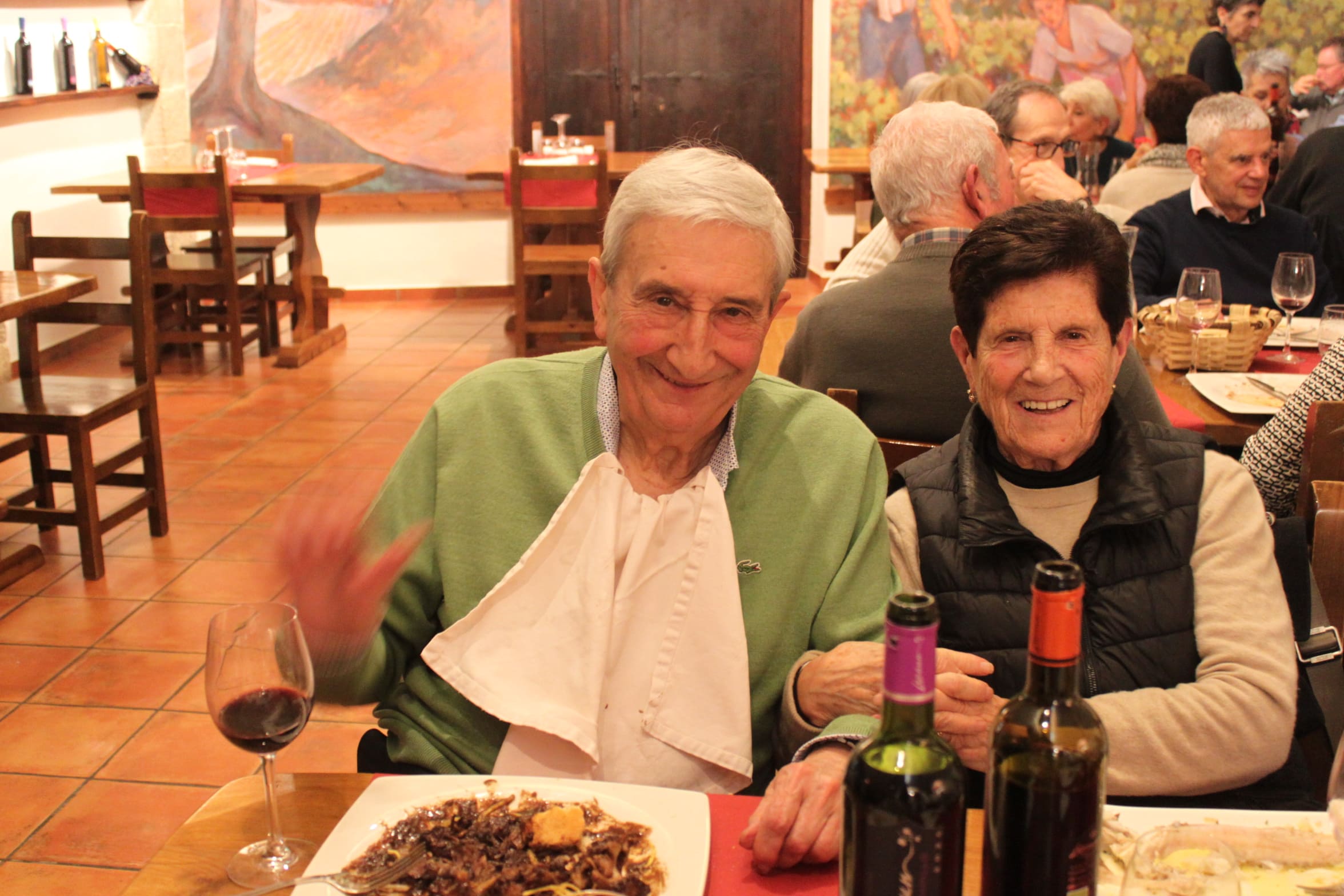 A las 17,35 damos por concluida la visita y nos dirigimos al autobús donde nos está esperando Tomás a la puerta de la bodega, pues sigue sin parar de llover. A las 19,05 llegamos a la estación de autobuses de Donostia en medio de un potente aguacero, después de haber disfrutado de un húmedo y pasado por agua día, pero del que hemos disfrutado a tope por las interesantes visitas realizadas, así como por el extraordinario ambiente de las y los asistentes.