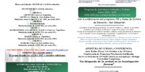 Ya tenemos el Programa de Actividades Culturales y Talleres para Curso 2025 – 2026. Puedes ver el programa completo aquí: Ver cursos O consultando el PDF. Ver PDF