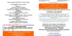 Curso 2023-2024 actualizado Programa de Actividades Culturales y Talleres Curso 2023 – 2024 actualizado. Podéis encontrar todos los cursos disponibles para el curso 2023-2024 en la sección de cursos https://acex-eske.com/nuestros-cursos/